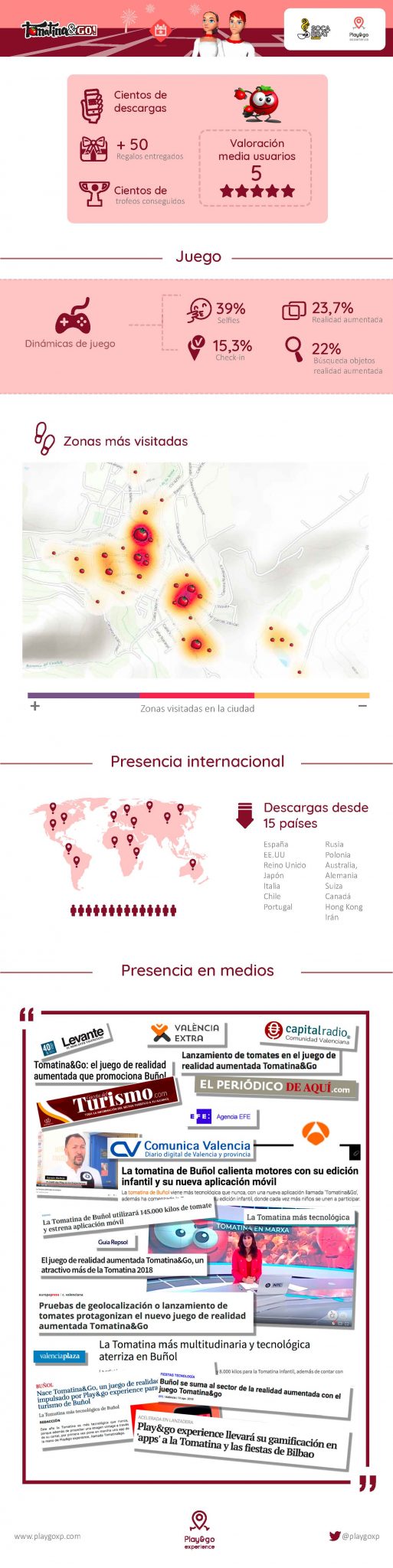 Para compartir nuestra experiencia y basarnos en hechos, queremos utilizar el ejemplo de la última app que hemos publicado, Tomatina&go, elaborada junto a Socarrat Studio y apoyada por el Ayuntamiento de Buñol, como una herramienta tecnológica para promocionar la Tomatina de Buñol 2018, mejorando la experiencia de los usuarios a través de la gamificación, la geolocalización y la realidad aumentada.